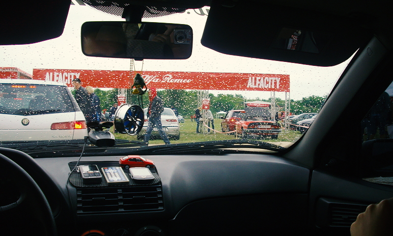 Reggel borongós felhők fogadták a koránkelőket, majd kapunyitás után nem sokkal eleredt az eső. Aki viszont eléggé kitartó volt, már napsütésben élvezhette a késő délutánt. A rossz idő sem tántoríthatja el az alfás kemény magot: több mint 500 Alfa Romeo érkezett AlfaCitybe!